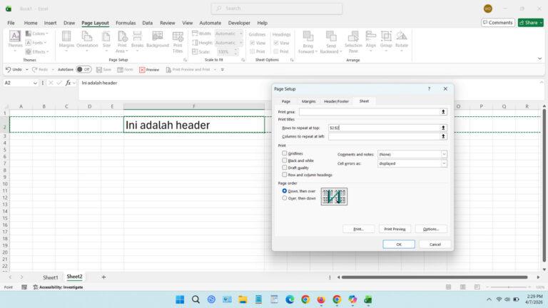 Membuat Header Excel Muncul di Semua Halaman
